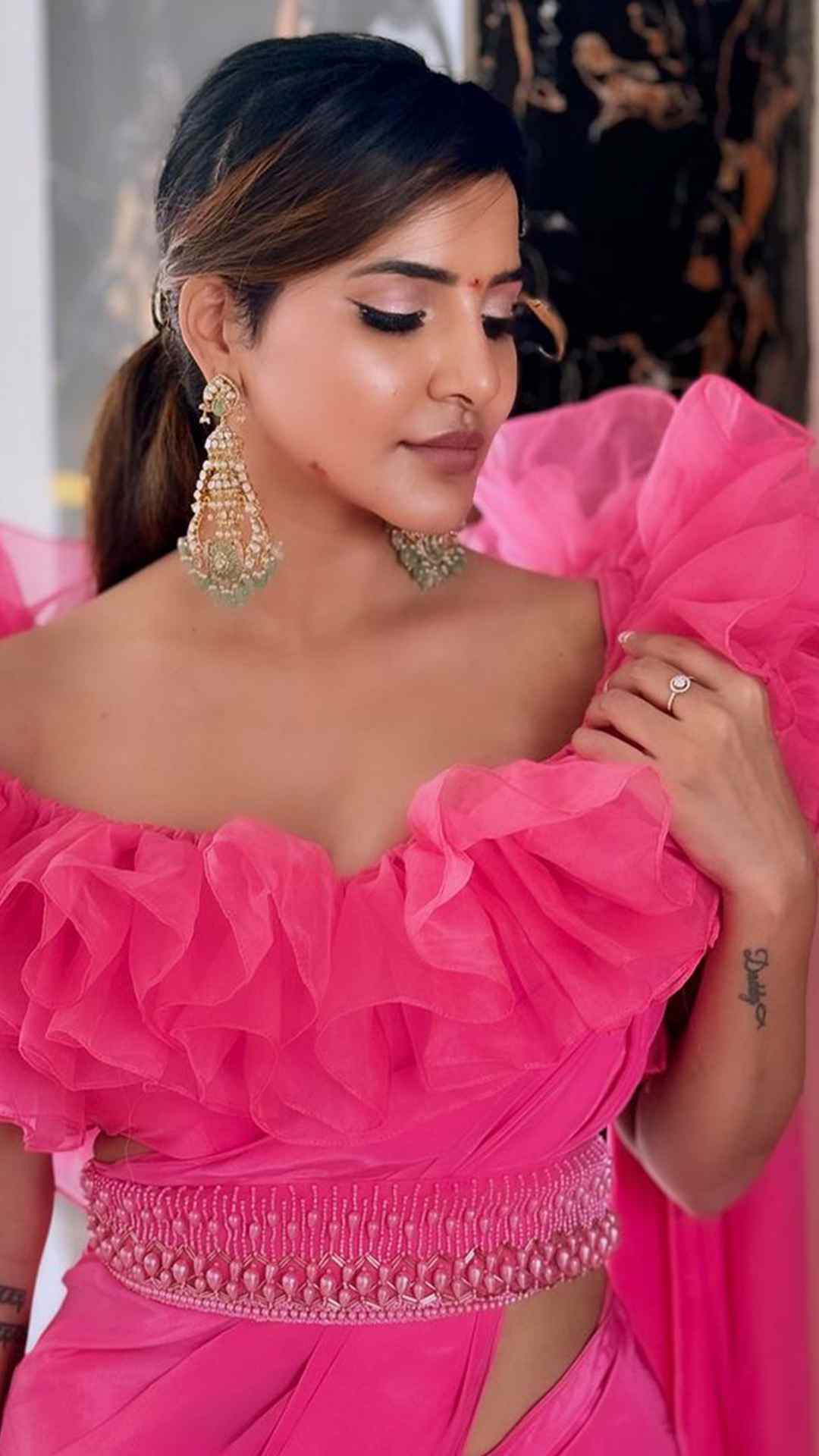 గులాబీ డ్రెస్సులో అందాల రచ్చ చేస్తున్న